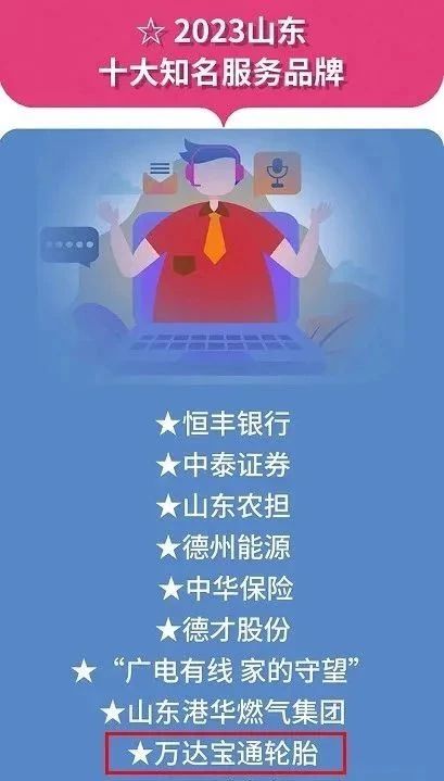 萬達寶通輪胎榮獲“2023山東十大知名服務(wù)品牌”稱號
