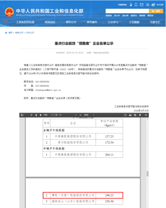 賽輪輪胎成為東營唯一,入選工信部能效“領(lǐng)跑者”名單
