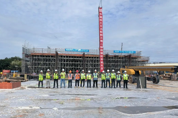 萬力輪胎三期工程1#物流庫第二節(jié)鋼柱吊裝順利完成