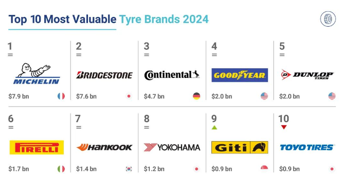 在2024年全球輪胎25強(qiáng)榜單中,賽輪輪胎和玲瓏輪胎穩(wěn)坐第11名和第12名的位置。玲瓏輪胎表現(xiàn)尤為出色,其品牌價值增長了11%,達(dá)到7.99億美元,這一顯著增長充分展示了玲瓏輪胎在市場上的強(qiáng)勁實(shí)力和不斷提升的國際競爭力。隨著品牌價值的持續(xù)攀升,玲瓏輪胎在全球輪胎行業(yè)的地位也日益穩(wěn)固。同樣值得驕傲的是,賽輪輪胎的品牌價值也增長了10%,達(dá)到8.01億美元。