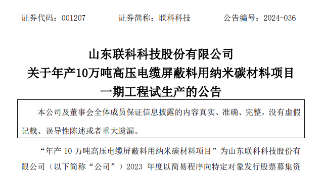 【炭黑產(chǎn)業(yè)網(wǎng)】6月28日消息,山東聯(lián)科科技股份有限公司于26日宣布了“年產(chǎn)10萬噸高壓電纜屏蔽料用納米碳材料項(xiàng)目”的進(jìn)展?fàn)顩r。據(jù)悉,此項(xiàng)目已順利完成一期工程,并獲得了臨朐縣人民政府的試生產(chǎn)批復(fù)。