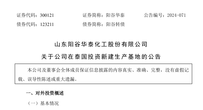 【炭黑產(chǎn)業(yè)網(wǎng)】7月3日消息,山東陽谷華泰化工股份有限公司(簡稱“陽谷華泰”)正計劃拓展其業(yè)務(wù)至海外市場,此舉意在加強其核心競爭力和盈利能力。公司決定在泰國投資建設(shè)全新的橡膠助劑生產(chǎn)基地,項目首期投資預(yù)計將不超過3760萬美元,涵蓋土地購置、廠房建設(shè)及固定資產(chǎn)購建等多個方面。具體投資金額將在獲得相關(guān)主管部門批準(zhǔn)后確定。