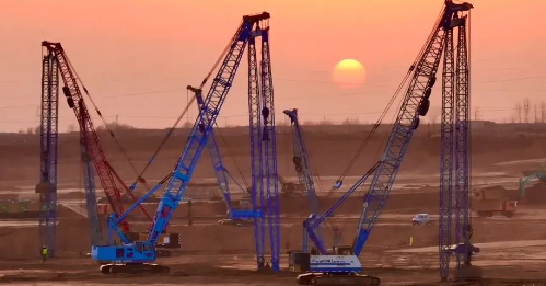 在項目現場,一幅熱火朝天的施工景象展現在眼前。工程機械轟鳴不斷,運輸車來回穿梭裝卸土方,工人們揮汗如雨,全力以赴推進工程進度。為了搶抓工期,百余臺挖掘機、內運車、推土機、壓路機等大型設備24小時不間斷作業(yè),施工通宵達旦,以確保項目能夠如期交付。