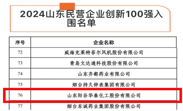 陽谷華泰化工入選2024山東民營企業(yè)創(chuàng)新百強
