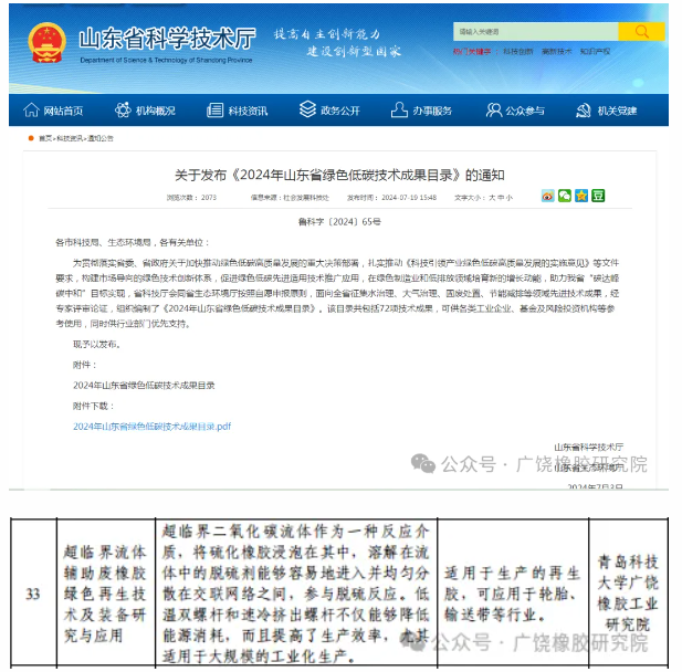 廣饒橡膠研究院新技術(shù)入選山東綠色低碳目錄