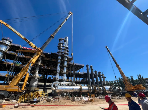 旭陽炭基新材料項目焦油主裝置——主塔吊裝順利完成