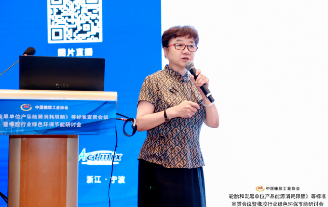 中國橡膠工業(yè)協(xié)會(huì)技術(shù)經(jīng)濟(jì)委員會(huì)副主任董文敏作了“橡膠行業(yè)節(jié)能環(huán)保相關(guān)工作匯報(bào)及下一步工作思考”報(bào)告。報(bào)告匯報(bào)了《輪胎和炭黑單位產(chǎn)品能源消耗限額》(GB 29449)的修訂過程,以及協(xié)會(huì)在節(jié)能降碳環(huán)保方面團(tuán)體標(biāo)準(zhǔn)的制定情況,同時(shí)給出其他細(xì)分專業(yè)產(chǎn)品能耗限額標(biāo)準(zhǔn)制定建議。今后,中橡協(xié)會(huì)積極參與生態(tài)環(huán)境部相關(guān)政策文件及標(biāo)準(zhǔn)的制定,推進(jìn)重點(diǎn)產(chǎn)品“碳足跡”研究及綠色產(chǎn)品原材料研究和應(yīng)用工作。