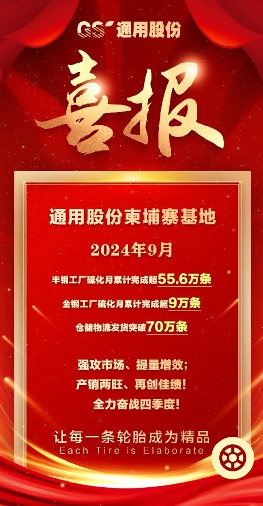 【炭黑產(chǎn)業(yè)網(wǎng)】9月30日消息,通用股份(601500.SH)位于柬埔寨的生產(chǎn)基地再度傳來喜訊,其9月份的生產(chǎn)數(shù)據(jù)彰顯出強勁的增長動力。據(jù)統(tǒng)計,該基地當月半鋼胎產(chǎn)量成功攀升至55.6萬條,而全鋼胎產(chǎn)量也突破了9萬條大關(guān),兩者均創(chuàng)下了新的生產(chǎn)紀錄。與此同時,產(chǎn)品發(fā)貨量也實現(xiàn)了歷史性突破,達到了70萬條,顯現(xiàn)出市場需求的旺盛態(tài)勢。