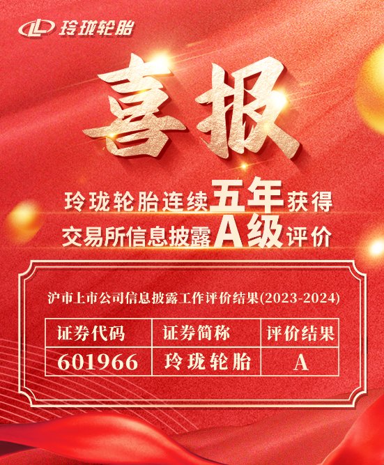 玲瓏輪胎連續(xù)五年榮獲信息披露最高評價等級A級,這不僅體現了監(jiān)管層、投資者及資本市場對公司持續(xù)規(guī)范運作、注重信息披露和心系投資者的信任與肯定,也是公司積極踐行“依法、誠信、務實”企業(yè)行為準則和“以人為本,促進和諧發(fā)展”核心價值理念的生動寫照。