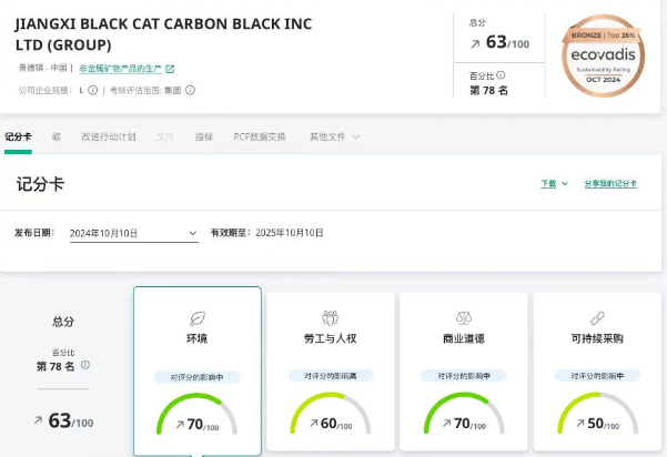 【炭黑產(chǎn)業(yè)網(wǎng)】10月15日消息,江西黑貓?zhí)亢诠煞萦邢薰?簡(jiǎn)稱黑貓股份)近日在全球領(lǐng)先的企業(yè)社會(huì)責(zé)任評(píng)估機(jī)構(gòu)EcoVadis的嚴(yán)格評(píng)審中,成功摘得銅牌榮譽(yù)。這一殊榮不僅彰顯了黑貓股份在企業(yè)社會(huì)責(zé)任與可持續(xù)發(fā)展領(lǐng)域的卓越貢獻(xiàn),還標(biāo)志著其努力已贏得國(guó)際高標(biāo)準(zhǔn)的高度認(rèn)可。