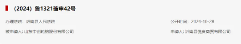 2024年10月28日,全國企業(yè)破產(chǎn)重整案件信息網(wǎng)公告,沂南縣悅良商貿(mào)有限公司已向沂南縣人民法院提交對山東中創(chuàng)輪胎股份有限公司的破產(chǎn)申請。