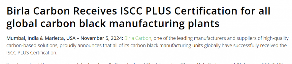 【炭黑產(chǎn)業(yè)網(wǎng)】11月7日消息,博拉炭黑自豪地宣布,其全球所有炭黑生產(chǎn)工廠均已成功獲得ISCC PLUS認證。