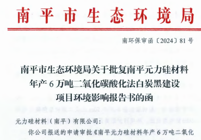 【炭黑產(chǎn)業(yè)網(wǎng)】11月15日消息,南平元力硅材料年產(chǎn)6萬噸二氧化碳酸化法白炭黑建設(shè)項目環(huán)評獲批。