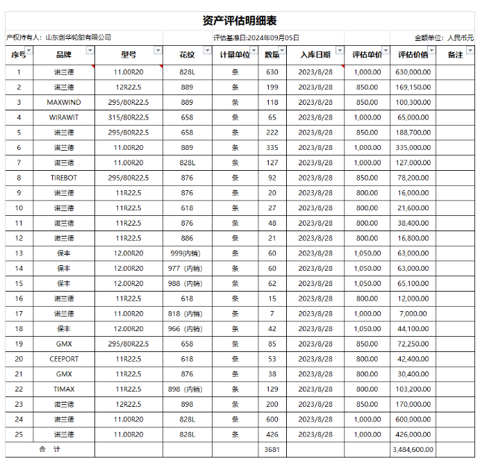 3681條輪胎抵押拍賣,山東輪胎工廠引關(guān)注