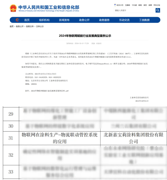 涂料行業(yè)唯一!北新嘉寶莉物聯(lián)網(wǎng)項(xiàng)目獲工信部殊榮