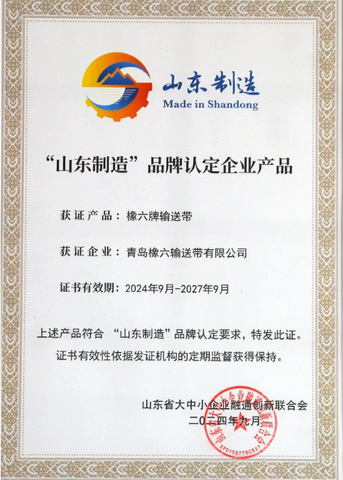 “橡六牌輸送帶”榮膺“山東制造”品牌認(rèn)定