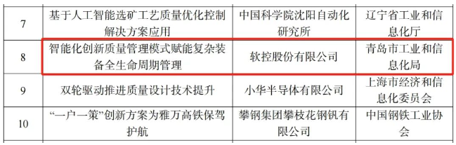 軟控創(chuàng)新質(zhì)量管理模式獲工信部認(rèn)可
