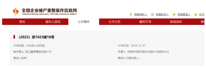 【炭黑產(chǎn)業(yè)網(wǎng)】12月30日消息,近日,全國企業(yè)破產(chǎn)重整案件信息網(wǎng)發(fā)布了一則關(guān)于浙江鑫星橡膠有限公司破產(chǎn)的消息。據(jù)悉,鑫星橡膠公司自2000年成立以來,注冊資本高達5000萬元人民幣,其業(yè)務(wù)范圍廣泛,涵蓋輪胎、橡膠制品、汽車配件以及電動自行車的制造與銷售。該公司一度具備自主研發(fā)新產(chǎn)品的實力,并且對產(chǎn)品質(zhì)量有著嚴格的把控。