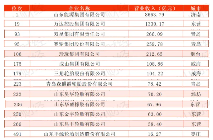 2024山東500強(qiáng),輪胎企業(yè)大放異彩!