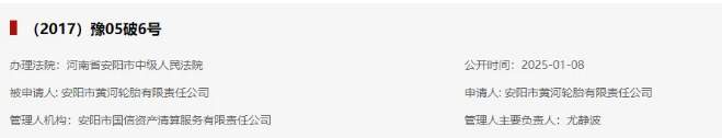 日前,全國(guó)企業(yè)破產(chǎn)重整案件信息網(wǎng)公示一則破產(chǎn)信息,為河南河南省安陽(yáng)市中級(jí)人民法院裁定安陽(yáng)市黃河輪胎有限責(zé)任公司的破產(chǎn)案件。