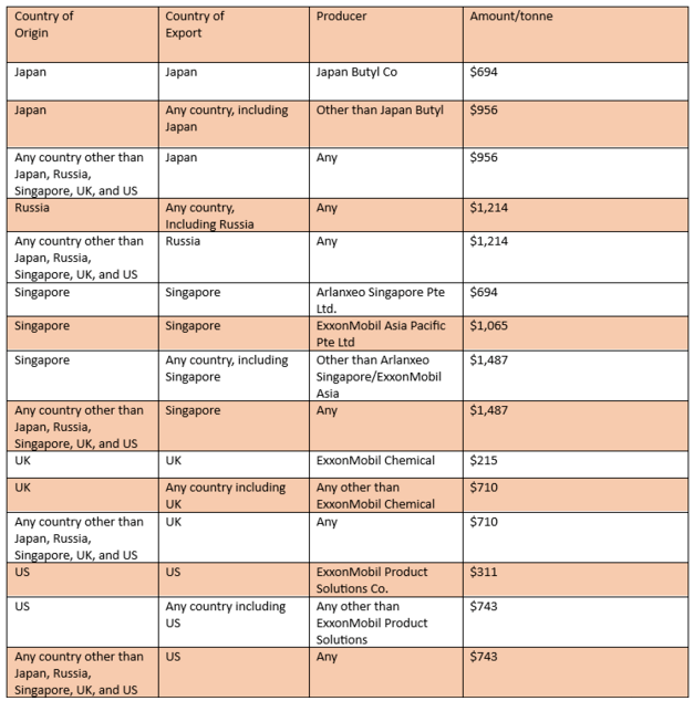 資料顯示,RSE是印度HIIR的唯一生產(chǎn)商,自2021年2月開始生產(chǎn)該材料,并于2023年3月31日正式實(shí)現(xiàn)商業(yè)生產(chǎn)。本次調(diào)查涉及的鹵化丁基橡膠包括溴化丁基橡膠(BIIR)和氯化丁基橡膠(CIIR),這些橡膠是通過IIR的異戊二烯基團(tuán)鹵化而制得,廣泛應(yīng)用于輪胎氣密層、軟管、密封件、薄膜、油箱襯里和傳送帶等領(lǐng)域。