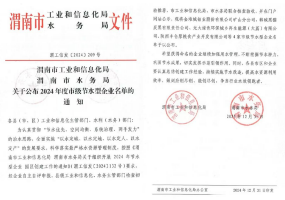 韓城黑貓榮膺2024年市級節(jié)水型企業(yè)稱號
