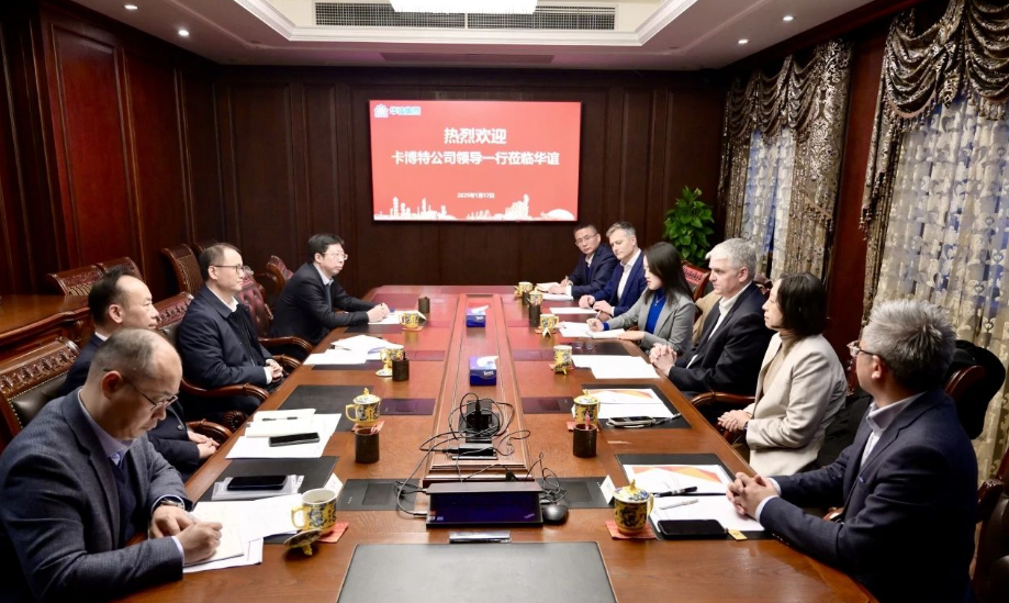 在會談中,霍博特先生(右方代表團中第三位)與錢志剛總裁(左方代表團中第三位)展開了深入且友好的交流。雙方就全球經(jīng)濟趨勢、炭黑行業(yè)的綠色低碳轉(zhuǎn)型與高質(zhì)量發(fā)展路徑、卡博特上海工廠獨立運營項目的最新動態(tài),以及補強材料的業(yè)務(wù)拓展與研發(fā)合作等多個議題,進(jìn)行了全面且富有建設(shè)性的探討。