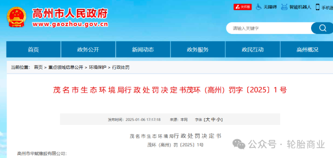 近日,高州市人民政府官網(wǎng)信息顯示,廣東省茂名市生態(tài)環(huán)境局高州分局對(duì)高州市華賦橡膠有限公司進(jìn)行處罰,決定對(duì)其超標(biāo)排放大氣污染物的環(huán)境違法行為處罰款人民幣貳拾萬(wàn)元整。