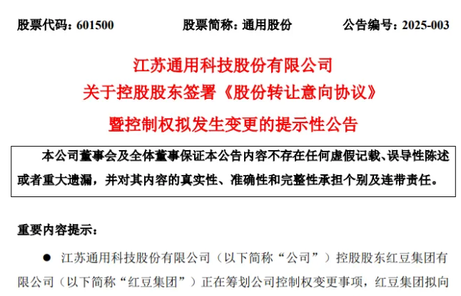 【炭黑產(chǎn)業(yè)網(wǎng)】1月24日消息,通用股份(601500.SH)于1月22日晚間披露了一項(xiàng)重大股權(quán)變動(dòng)計(jì)劃,其控股股東紅豆集團(tuán)擬將所持24.41%的股份轉(zhuǎn)讓給廣州工業(yè)投資控股集團(tuán)有限公司(廣州工控)。此舉意味著通用股份或?qū)⒂瓉?lái)具有國(guó)資背景的新控股股東,為輪胎業(yè)務(wù)的持續(xù)發(fā)展注入嶄新活力。
