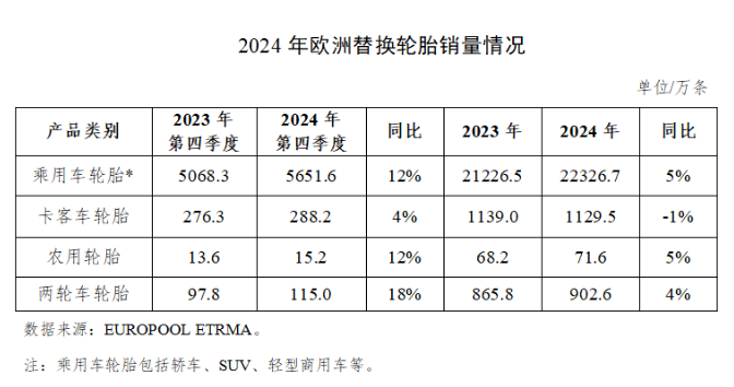 【炭黑產(chǎn)業(yè)網(wǎng)】2月5日消息,歐洲輪胎橡膠制造商協(xié)會(huì)(ETRMA)近日公布了2024年歐洲輪胎替換市場(chǎng)的銷(xiāo)售數(shù)據(jù),各細(xì)分市場(chǎng)均展現(xiàn)出積極的增長(zhǎng)趨勢(shì),傳遞出市場(chǎng)強(qiáng)勁復(fù)蘇的信號(hào)。