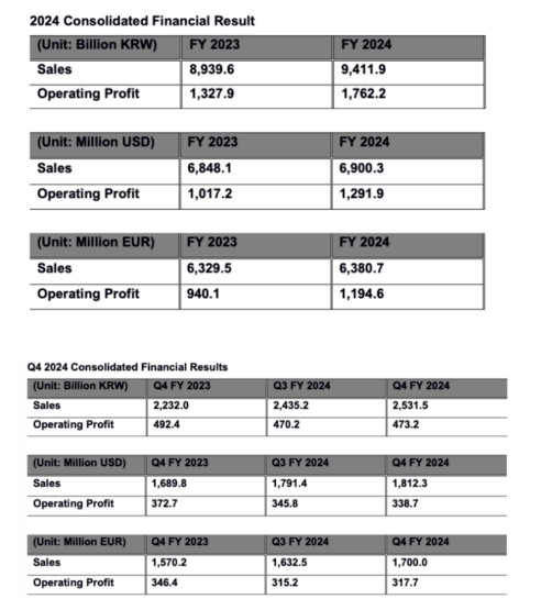 【炭黑產(chǎn)業(yè)網(wǎng)】2月6日消息,韓泰輪胎技術(shù)公司在2024年取得了顯著的業(yè)績增長,其營業(yè)利潤同比大幅攀升32.7%,達到約11.95億歐元。同時,公司的全球綜合銷售額也實現(xiàn)了5.3%的增長,總額達到63.81億歐元。這家韓國輪胎巨頭在2月4日發(fā)布的報告中指出,盡管全球經(jīng)濟面臨諸多挑戰(zhàn),但公司憑借高附加值產(chǎn)品的持續(xù)推廣,成功實現(xiàn)了盈利能力的歷史性突破。