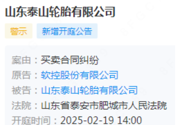 【炭黑產(chǎn)業(yè)網(wǎng)】2月14日消息,近日,軟控股份有限公司因買賣合同糾紛,將山東泰山輪胎有限公司告上了法庭。根據(jù)最新發(fā)布的公告,這起案件定于2025年2月19日14:00,在山東省泰安市肥城市人民法院的第八審判庭進行開庭審理。山東泰山輪胎有限公司,作為輪胎制造業(yè)的佼佼者,此番身陷合同風(fēng)波,無疑引起了業(yè)界的廣泛關(guān)注。