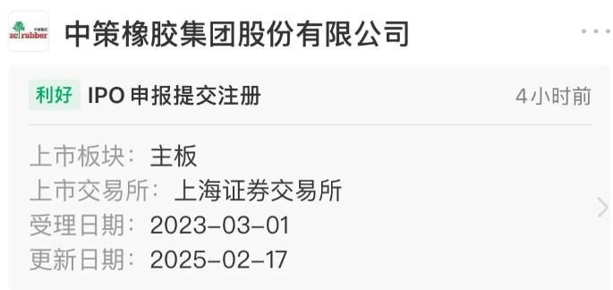 中策橡膠IPO審核提交注冊