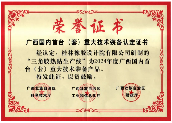 此外,該產(chǎn)品還獲得了多項(xiàng)專利認(rèn)證,包括9件發(fā)明專利(其中1項(xiàng)為西班牙授權(quán)專利)和13件實(shí)用新型專利。這些專利為輪胎行業(yè)的綠色、高效、智能制造提供了強(qiáng)有力的技術(shù)支撐,推動(dòng)了輪胎行業(yè)向更高質(zhì)量的發(fā)展。同時(shí),該產(chǎn)品憑借先進(jìn)的工藝方法技術(shù)以及高度集成化、自動(dòng)化、數(shù)字智能化的性能優(yōu)勢(shì),日前榮獲了2024年度廣西國(guó)內(nèi)首臺(tái)(套)重大技術(shù)裝備認(rèn)定。這一認(rèn)定不僅是對(duì)裝備科技公司自主研發(fā)、設(shè)計(jì)和制造能力的充分肯定,也是對(duì)企業(yè)在高端化、智能化輪胎制造生產(chǎn)線產(chǎn)品方面的高度認(rèn)可。