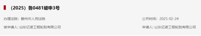 日前,全國企業(yè)破產(chǎn)重整案件信息網(wǎng)公開了山東億諾工程輪胎有限公司的破產(chǎn)審查案件,辦理法院為滕州市人民法院。