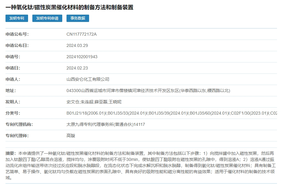 【炭黑產(chǎn)業(yè)網(wǎng)】3月5日消息,山西省科學(xué)技術(shù)廳3月4日公示了2024年度山西省科技成果轉(zhuǎn)化引導(dǎo)專項擬立項項目,其中包括山西安侖化工有限公司的 《氧化鈦磁性炭黑催化材料的制備方法和制備裝置應(yīng)用推廣》上榜!