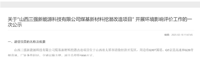 【炭黑產(chǎn)業(yè)網(wǎng)】3月11日消息,山西三強新能源科技有限公司煤基新材料挖潛改造項目公開。