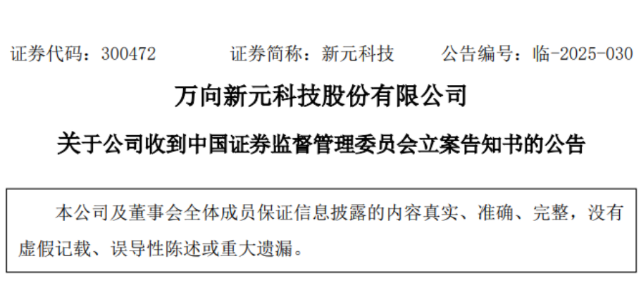 證監(jiān)會下發(fā)的《立案告知書》明確指出,將對萬向新元展開全面調查。對此,萬向新元方面表示,公司將全力配合證監(jiān)會的調查工作,嚴格按照相關法律法規(guī)及監(jiān)管要求,切實履行好信息披露義務,確保所有信息真實、準確、完整。