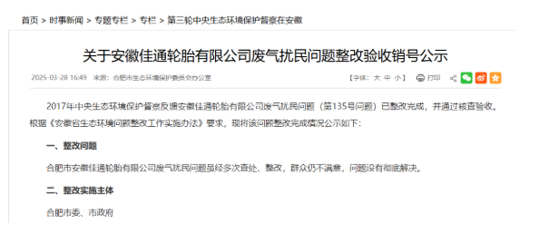 【炭黑產(chǎn)業(yè)網(wǎng)】4月9日消息,近日,安徽佳通輪胎有限公司歷經(jīng)八年的廢氣治理之路終于迎來重要節(jié)點(diǎn),其整改工作順利通過核查驗(yàn)收,標(biāo)志著困擾當(dāng)?shù)鼐用穸嗄甑膼撼艏皳]發(fā)性有機(jī)物(VOCs)廢氣擾民問題得到有效解決,環(huán)保治理取得突破性進(jìn)展。