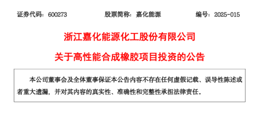 嘉化能源加碼高性能橡膠賽道 搶占行業(yè)增長紅利