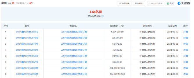 根據(jù)天眼查的數(shù)據(jù)顯示,山東中創(chuàng)輪胎股份有限公司限制消費(fèi)令達(dá)37次,執(zhí)行標(biāo)的金額7231.75萬元,未履行總金額7223.21萬元,未履行比例99.9%,被執(zhí)行總金額4.62億元。
