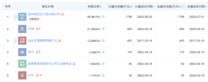 雙星名人集團的歷史可以追溯到 1921 年成立的國營青島第九橡膠廠,原隸屬于青島市屬重點國企青島雙星集團。后來,隨著輪胎產(chǎn)業(yè)等資產(chǎn)成功上市,雙星鞋服從雙星集團剝離出來,并經(jīng)過改制轉(zhuǎn)變?yōu)槊駹I企業(yè)。汪海作為業(yè)界聞名的 “鞋王”,長期擔(dān)任集團董事長和法定代表人,在公司發(fā)展歷程中留下了深刻印記。據(jù)炭黑產(chǎn)業(yè)網(wǎng)了解,2022 年,青島星邁達工貿(mào)有限公司通過增資一躍成為集團第一大股東,該公司由徐英持股 80%、汪軍持股 10%,汪海則因此退居第二大股東,但依然保留董事長職務(wù)。