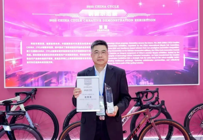展會(huì)期間,正新輪胎可謂大放異彩。其專為 E-CARGO 車款精心研發(fā)的全新產(chǎn)品 CTC-31,憑借自身超凡的性能匹配,成功斬獲 “2025 CHINA CYCLE 創(chuàng)新獎(jiǎng)評(píng)選” 優(yōu)秀獎(jiǎng),瞬間成為展會(huì)中的熱門話題,有力地彰顯出正新輪胎在 E-CARGO 市場(chǎng)無可比擬的領(lǐng)先地位與深厚的技術(shù)底蘊(yùn)。在領(lǐng)獎(jiǎng)環(huán)節(jié),正新廈門集團(tuán)總經(jīng)理許智明博士代表公司上臺(tái),接過這份榮譽(yù)。