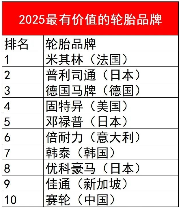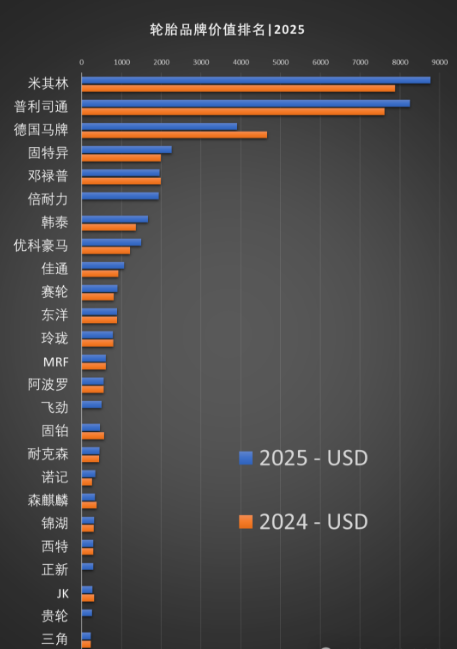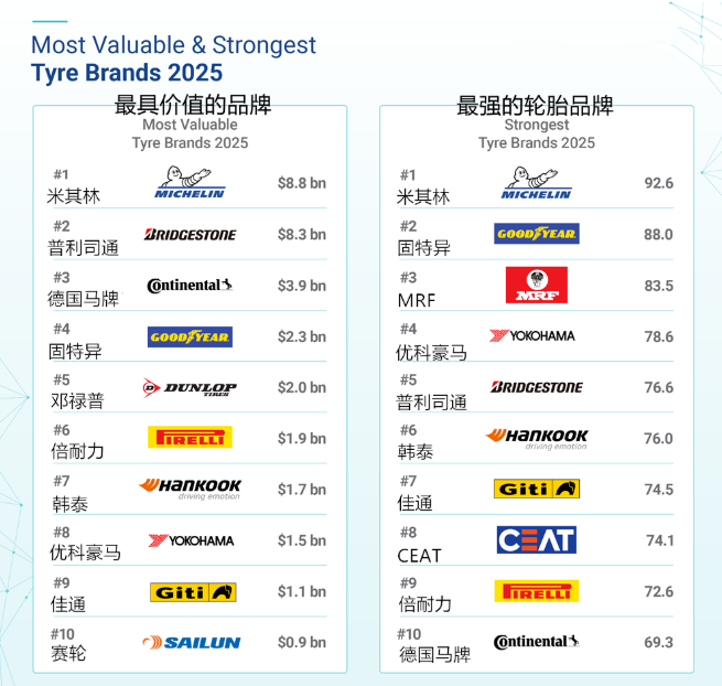 全球輪胎品牌價(jià)值排行榜|2025