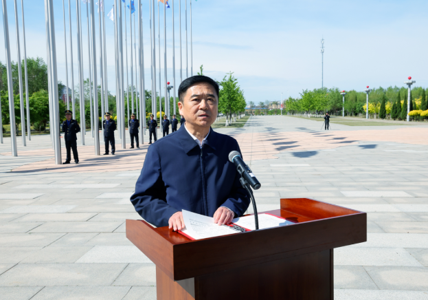 朝陽市委副書記、市長老顏武代表市委、市政府向受表揚(yáng)企業(yè)致以熱烈祝賀與崇高敬意,并肯定企業(yè)為地方經(jīng)濟(jì)發(fā)展作出的重要貢獻(xiàn)。朝陽市委副書記、政法委書記周慧哲主持升旗儀式。
