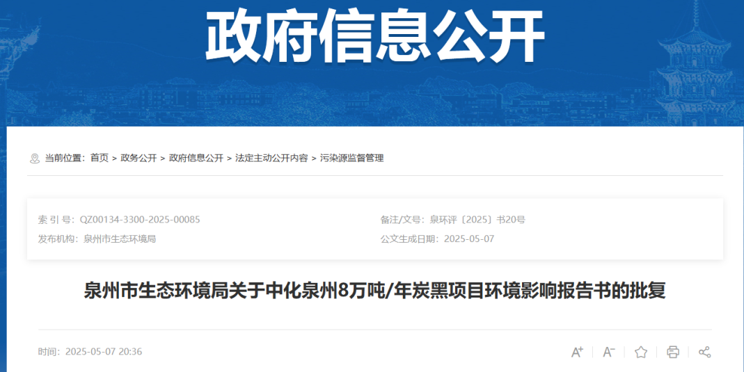 8萬(wàn)噸/年炭黑項(xiàng)目,環(huán)評(píng)獲批!