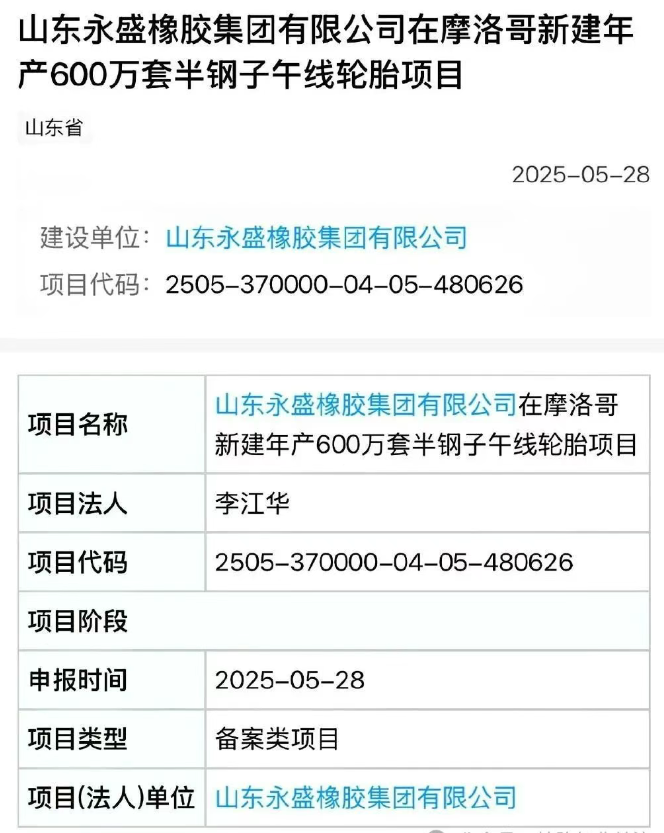 【炭黑產(chǎn)業(yè)網(wǎng)】5月29日消息,中國(guó)輪胎行業(yè)全球化布局再添新動(dòng)作。山東永盛橡膠集團(tuán)有限公司日前正式宣布,將投資興建一座位于摩洛哥的現(xiàn)代化輪胎工廠,規(guī)劃年產(chǎn)能達(dá)600萬(wàn)套半鋼子午線輪胎。這一項(xiàng)目不僅標(biāo)志著永盛橡膠全球化戰(zhàn)略的深化,也反映出中國(guó)輪胎企業(yè)正加速向非洲及歐洲市場(chǎng)拓展的步伐。目前,該工廠項(xiàng)目已順利完成備案,預(yù)計(jì)將于未來(lái)幾年內(nèi)投產(chǎn),進(jìn)一步鞏固永盛橡膠在全球輪胎市場(chǎng)的地位。