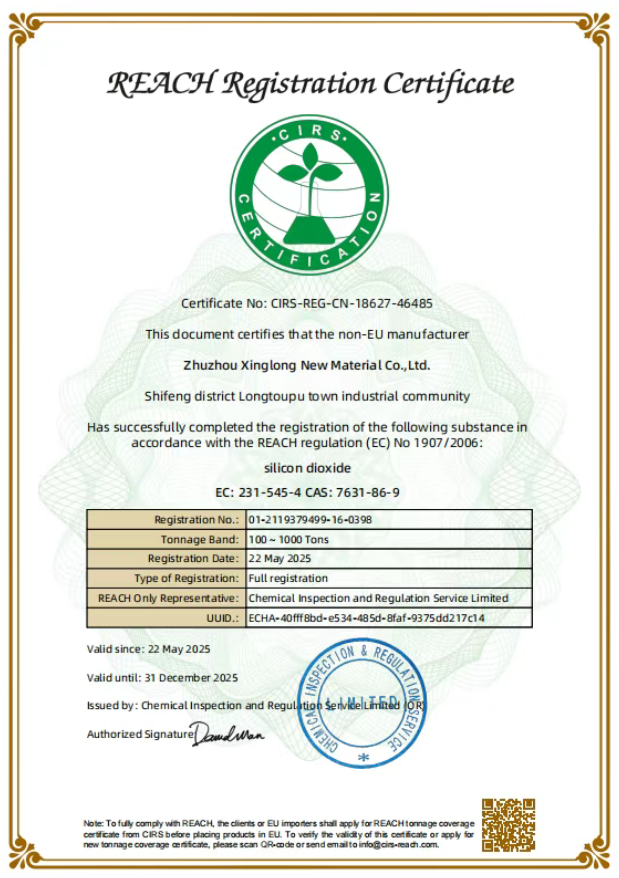 喜訊!株洲興隆二氧化硅獲歐盟REACH認(rèn)證
