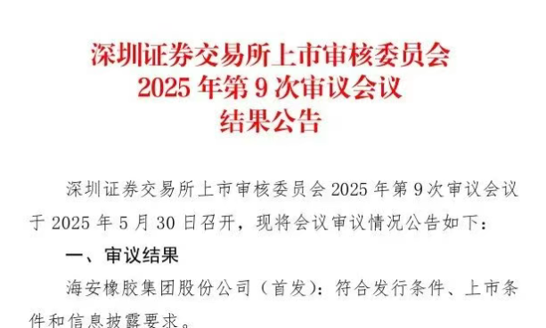 【炭黑產業(yè)網(wǎng)】6月3日消息,近日,深圳證券交易所上市審核委員會公布了2025年第9次審議會議的最終結果,海安橡膠集團股份公司成功通過首次公開發(fā)行股票并上市的審核,這一消息迅速在資本市場引起廣泛關注。此次審核通過,不僅為海安橡膠打開了通往資本市場的大門,也預示著其未來發(fā)展將迎來新的篇章。