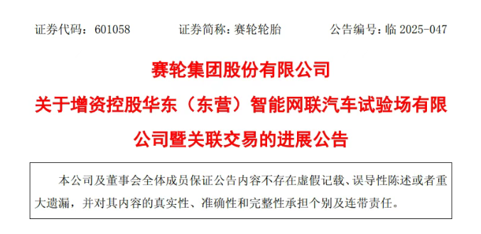 賽輪集團(tuán)增資控股華東試驗(yàn)場(chǎng),搶占智能網(wǎng)聯(lián)輪胎先機(jī)